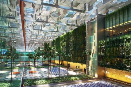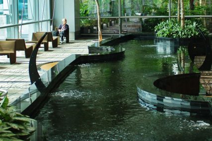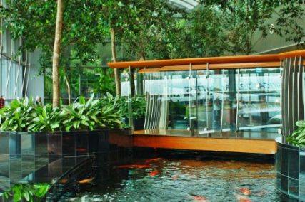 Cantilevered 4 meters off the ground, with total height of 18 meters and with an area of 5,400 square meters, the Green Wall is planted with thousands of pre-grown tropical plants and bromeliads. Our scope includes the green wall, glass water wall, koi ponds, structural steel works, auto fogging & irrigation system and M&E works.